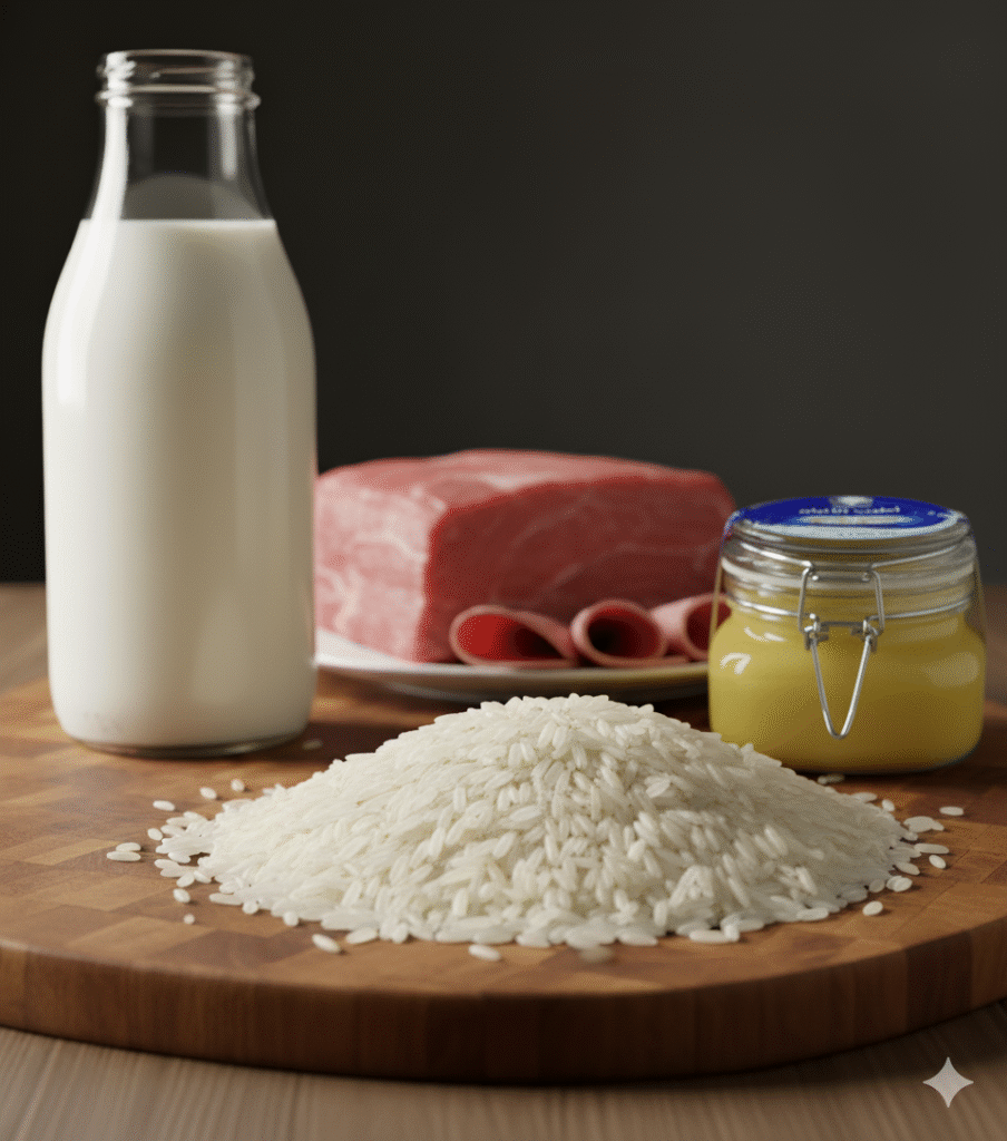 تحضير الأرز: سخّن السمنة البلدية في قدر، أضف الأرز والملح والفلفل